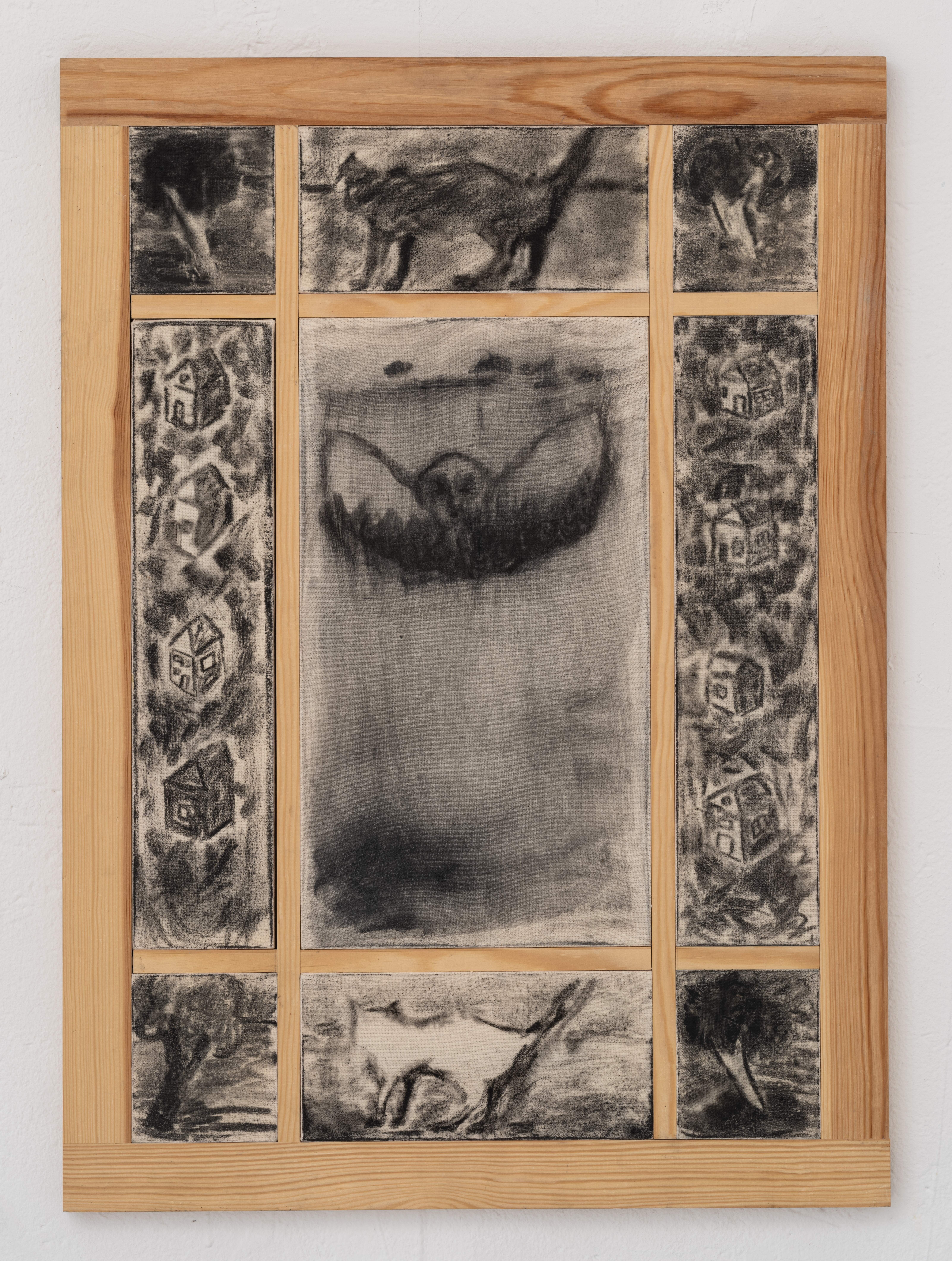 Charcoal on canvas, wooden frame